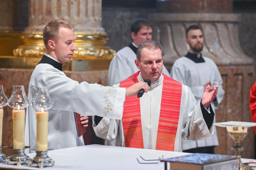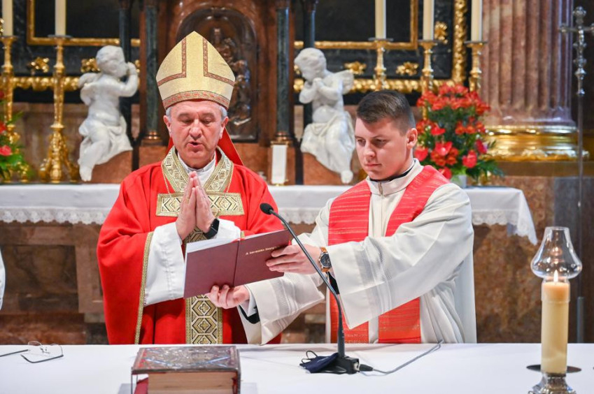 Veres András szentbeszédében a pünkösdvasárnapi evangéliumi részletet (Jn 20,19–23) idézve rávilágított arra, hogy miként az apostolok a zsidóktól való félelmükben zárva tartották az ajtót, mert félelem tartotta fogva a szívüket; úgy emberi életünk egészét is végigkísérik a különféle félelmek.