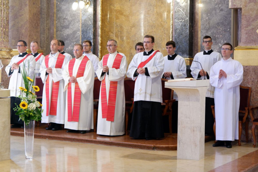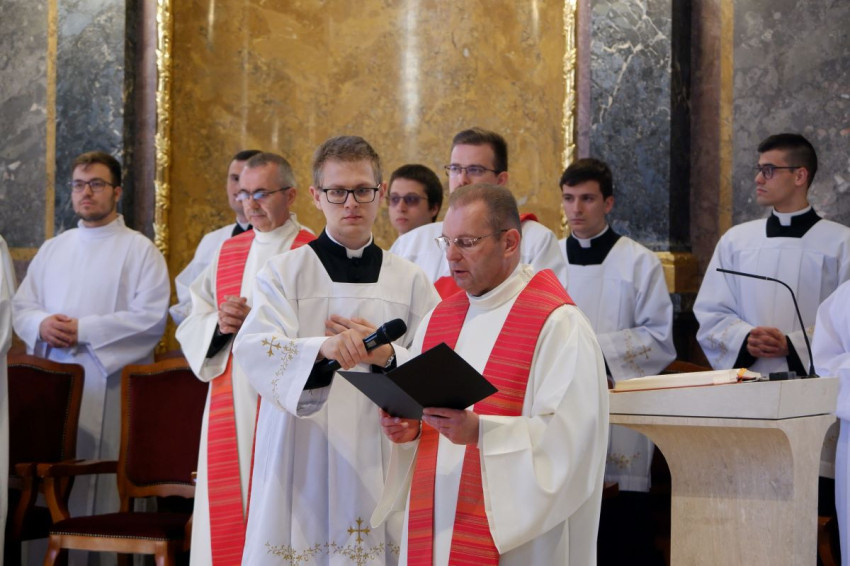 A szentmisén Veres András megyéspüspökkel koncelebrált Maróti Gábor püspöki bírósági helynök, gönyűi plébános, Böcskei Győző székesegyházi plébános, Császár István, a Brenner János Papnevelő Intézet spirituálisa és Hencz Márton püspöki szertartó.