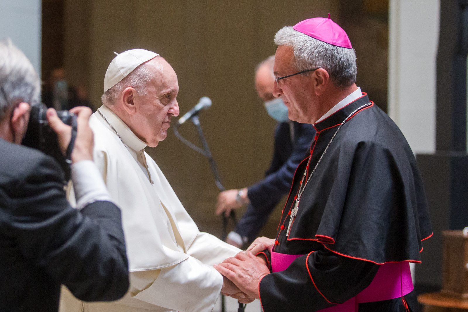 A Szentatyával való találkozásaimról sok szép élmény él bennem, amelyeket itt nincs lehetőségem részletesen elmondani. Ezek közül két, számomra kiemelkedő emléket szeretnék megosztani. 2017 novemberében ad limina látogatásra érkeztünk Ferenc pápához. Korábban már volt alkalmam részt venni ilyenen, de a Magyar Katolikus Püspöki Konferencia elnökeként ez volt az első ilyen látogatásom. Az olvasó is sejtheti, mekkora figyelemmel és izgalommal készültem e találkozásra, s készítettem el az ilyenkor szükséges beszámolót a püspöki konferencia nevében. Amikor megérkeztünk a Szentatyához, és körbeültetett bennünket, meglepetésszerűen közölte velünk, hogy most akkor beszélgessünk. Hirtelen nem tudtam, mit kezdjek az előkészített beszámolómmal. A Szentatya sietett segítségemre: „Püspök úr, csak tegye félre!” Ezután egy több mint kétórás beszélgetés következett a jelen lévő püspök atyákkal, és én már teljesen el is feledkeztem a beszámolóról, amikor búcsúzóul Ferenc pápa csak ennyit szólt: „Azt azért csak adja ide!” Ebben
