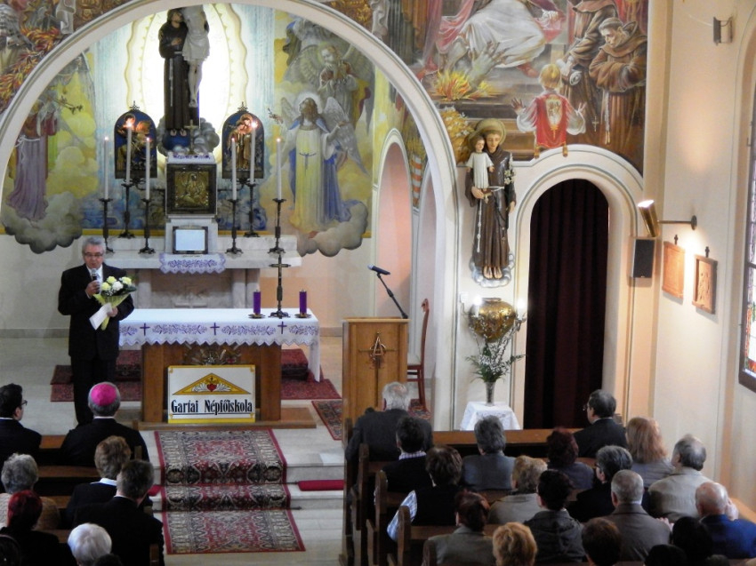 Isten mindenkinek meg akarja adni a hit ajándékát. Kikényszeríteni nem lehet, de kötelességünk, hogy megélt tapasztalatként, élményként adjuk tovább a hitünket. Föl kell ébresztenünk az Isten utáni vágyat, mely ott van minden emberben – hangzott el az előadáson, melynek végén Toronyi István Valami elveszett című költeményével búcsúzott Veres András megyéspüspök.