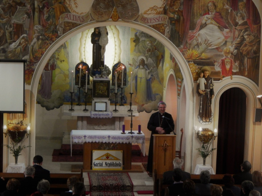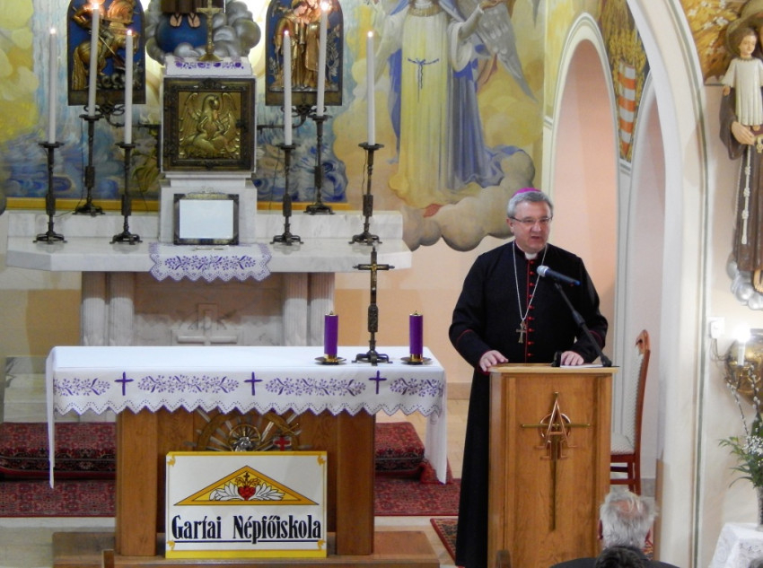 A győri főpásztor ezt követően felolvasta Faludy György Régtől sejtettem ezt című versét, és ezzel kapcsolatban arra hívta fel a figyelmet, hogy Isten nélkül, a hit nélkül csak a káosz marad, és az egész élet értelmetlenné válik. A modern ember nem akarja elfogadni az objektív igazságokat, keresztényként azonban az a feladatunk, hogy ezeket hirdessük és továbbadjuk. A legautentikusabb hely természetesen a család, mely életformaként tudja továbbadni a hitet, az igazságot. A következő hely pedig a katolikus iskoláké, melyek lehetőséget biztosítanak közösségben megélni és ünnepelni a liturgiát, valamint arra is, hogy az imádság a mindennapok része legyen.