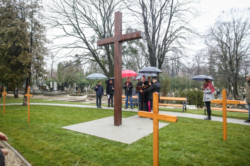 Az elkészült beruházást ismertetve Radnóti Ákos alpolgármester arról számolt be, hogy a temetőket üzemeltető társaság a régi ravatalozó közelében lévő területen tereprendezési munkálatokat végzett, majd tizenöt sírhelyet alakított ki. A sírhelyek felé vezető utat szegéllyel látták el, felszórták gyöngykaviccsal, a parcellák között mintegy ötven méter hosszúságban térkövezett kis sétányt alakítottak ki. A sírhelyeket névtelen keresztek jelölik, környezetüket befüvesítették. A terület központi részén négy méter magas tölgyfából készített keresztet állítottak fel, melyet reflektor világít meg. A parcellák mellé nyolc padot helyeztek ki.