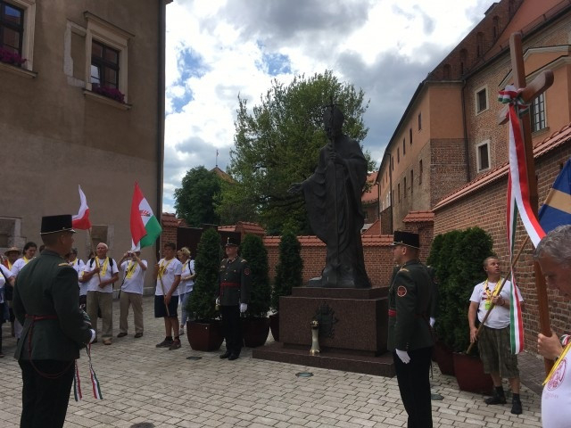 A zarándokvonat indulása előtt Soltész Miklós, az Emberi Erőforrások Minisztériumának egyházi, nemzetiségi és civil társadalmi kapcsolatokért felelős államtitkára elmondta: a zarándokok között százhatvan fiatal is van – ők az anyaország mellett Erdélyből és Kárpátaljáról érkeztek. A Magyarország és Lengyelország közötti barátság több mint szövetség, alapját a kereszténység jelenti. Soltész Miklós arra kérte a zarándoklat résztvevőit, hogy ezt a szellemiséget erősítsék. Az államtitkár utalt a két ország történelmének közös szereplőire. A Szent László-évben a Lengyelországban született király példáját emelte ki: Szent László szerette hazáját, befogadta azokat, akik kopogtattak, de határozottan lépett fel azokkal szemben, akik ellenséges szándékkal érkeztek. Nagy szükség van ma az Árpád-házi királyok példájára, akik Magyarországot védték és megtartották a kereszténységben.