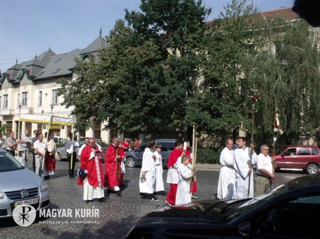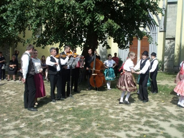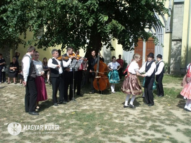 Végül a beregszásziak szendviccsel kínálták a zarándokokat, a gyerekek birtokba vették a plébánia játszóterét, a templom mellett pedig a gálocsi Csipkés zenekar játszott magyar népdalokat, melyek dallamára az ungvári Csüllő néptáncegyüttes tagjai táncoltak.