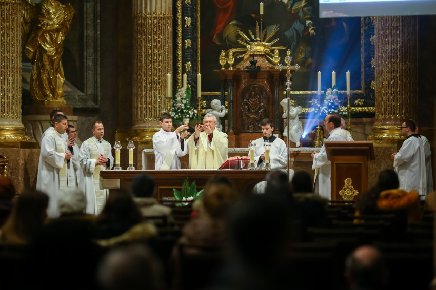 A főpásztor által bemutatott szentmisén koncelebrált Reisner Ferenc, a győri szeminárium rektora, Bognár István spirituális, Simon Dávid székesegyházi káplán és Végerbauer Richárd prefektus.