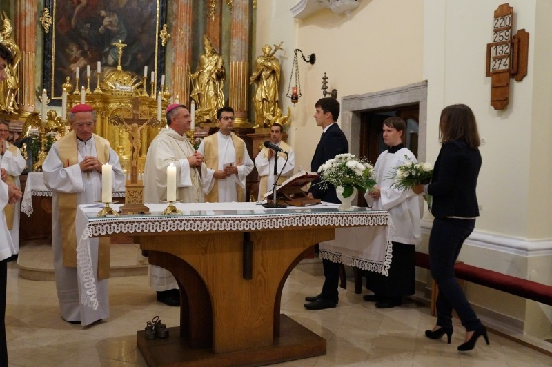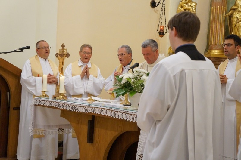 Az ünnepi szentmisét Veres András megyéspüspök celebrálta, koncelebráltak többek között Pápai Lajos nyugalmazott püspök, Megyeri Ciprián egyetemi lelkész, révfalui plébános, Németh László általános püspöki helynök, Lukácsi Zoltán kanonok, főiskolai rektor, Németh Gábor egyetemi tanár, kisbácsai plébános, Marics István püspöki irodaigazgató, székesegyházi plébános, valamint Mogyorósi Márk püspöki titkár.