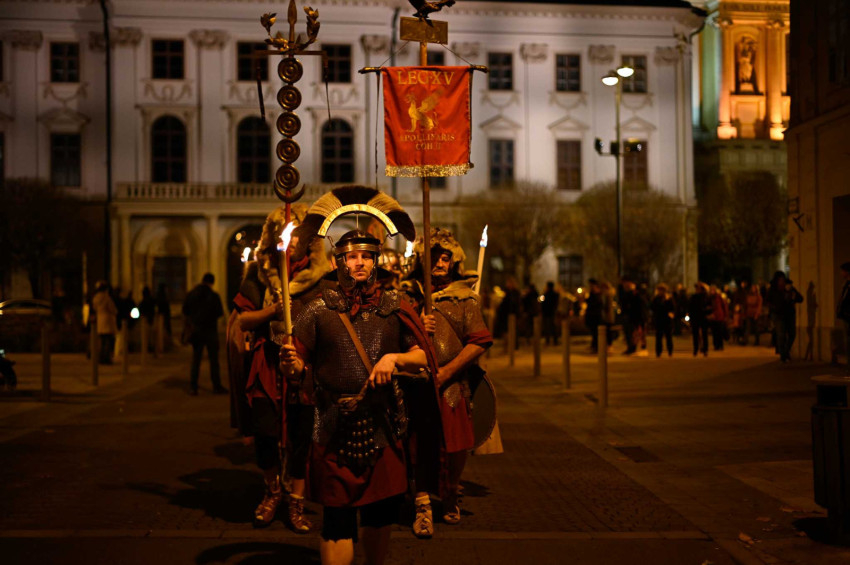 Az esti imádság után a szombathelyiek égő lámpásokkal, mécsesekkel a kezükben, énekelve vonultak Szent Márton szobrához. Itt Székely János megyéspüspök mondott ünnepi beszédet. Kiemelte: