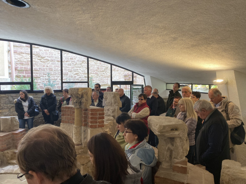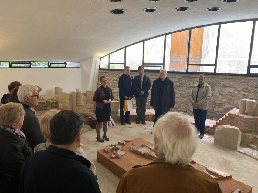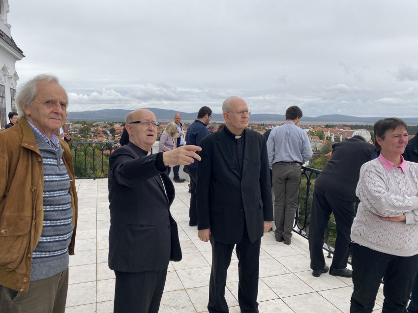 A szentmisét követően a vendégeknek Nagy Károly apát, kanonok, plébános mesélt a főszékesegyház történetéről, majd Erdő Péter Boldog Gizella karcsontereklyéjével megáldotta munkatársait. Szent István és Boldog Gizella szobra mellől megcsodálták a veszprémi panorámát, majd Udvarhelyi Erzsébet, a Boldog Gizella Főegyházmegyei Gyűjtemény igazgatója bemutatta Magyarország legrégebbi kápolnáját, a Szent György-kápolnát, ahol Szent Imre herceg szüzességi fogadalmat tett. Itt nyugszik Vetési Albert püspök.