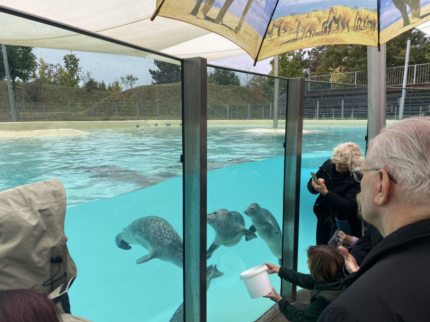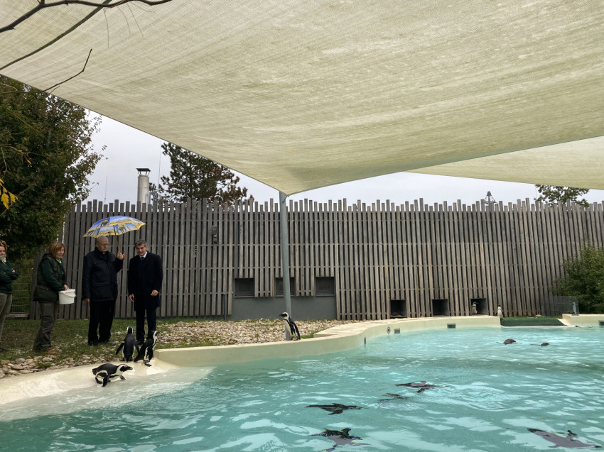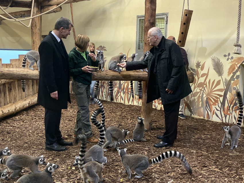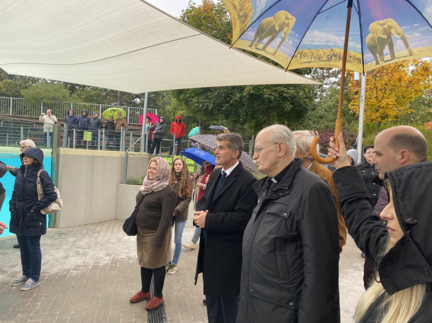 A mozgalmas nap programja a veszprémi állatkertben tett látogatással ért véget, ahol Török László, az állatkert igazgatója kísérte körbe a bíborost és munkatársait. Magyarország legnagyobb hagyományokkal rendelkező vidéki állatkertjében, a Gulya-dombi részen megtekintették hazánk egyik legszebb és legnagyobb Afrika-szavanna kifutóját, ahol zebrákat, impalákat és egy háromfős szélesszájú orrszarvúcsaládot csodálhattak meg. Felkeresték emellett a pingvinek és a fókák medencéit, valamint Török László bemutatta számukra az állatkertben működő modern állatkórházat.