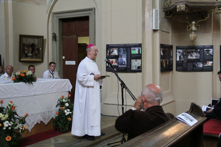 A szervezők, a Veszprémi Érsekség, a Boldog Gizella Főegyházmegyei Gyűjtemény és a Keresztény Katonák Szövetsége nevében Udvarhelyi Erzsébet gyűjteményi igazgató bevezető gondolataiban emlékeztetett: 1914. július 28-án, egy hónappal Ferenc Ferdinánd trónörökös és felesége meggyilkolása után az Osztrák–Magyar Monarchia hadat üzent Szerbiának, s ezt követően a háborús konfliktus kiszélesedett. A nagyhatalmak villámháborúra számítottak, de a harcok véres hullámai négy éven át uralták Európát. „A nagy háborúban”, ahogy ma emlegetjük az I. világháborút, a Monarchia területéről összesen 9 millió katonát szereltek fel, köztük 3 milliót Magyarország területéről. Közülük 500 ezer esett el a harctéren, 1 millió sebesült meg, és több mint 800 ezer esett fogságba. A harcok idején a veszprémi várban a piarista gimnázium és a szeminárium épülete katonai kórházként szolgált, sebesültek százait gondozták falaik között.