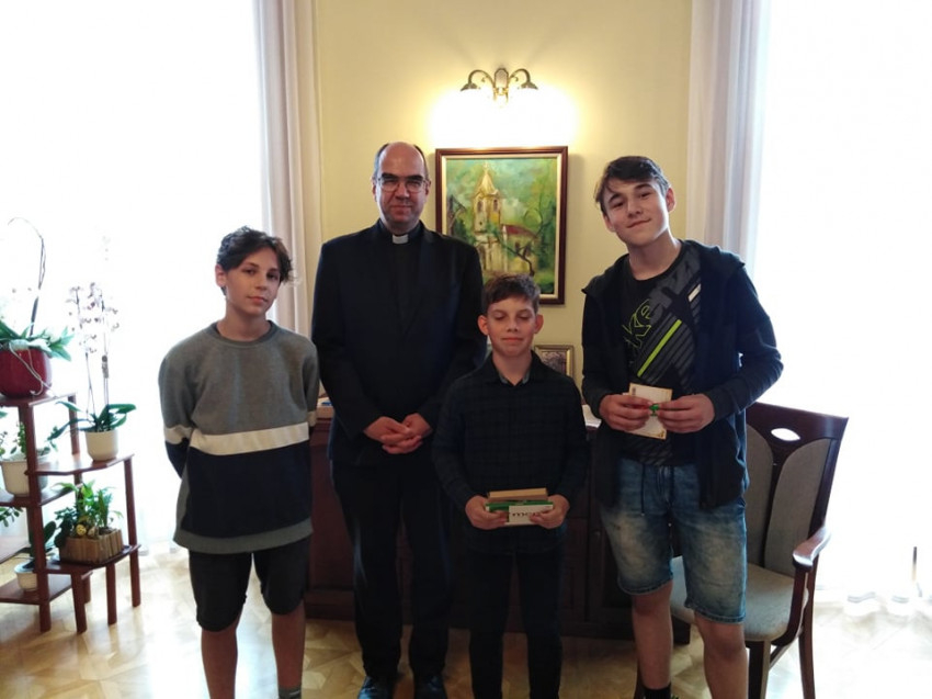 A püspök atya egy kis vetélkedőt állított össze számukra. Voltak kérdések, amelyekre a választ csak az tudta, aki nagyon figyelt az előadáson. Természetesen vissza lehetett menni az adott helyszínekhez, kiállított darabokhoz. Az első három helyezett egy-egy csokit kapott. Ezenkívül mindenki választhatott egy kis ajándékot.