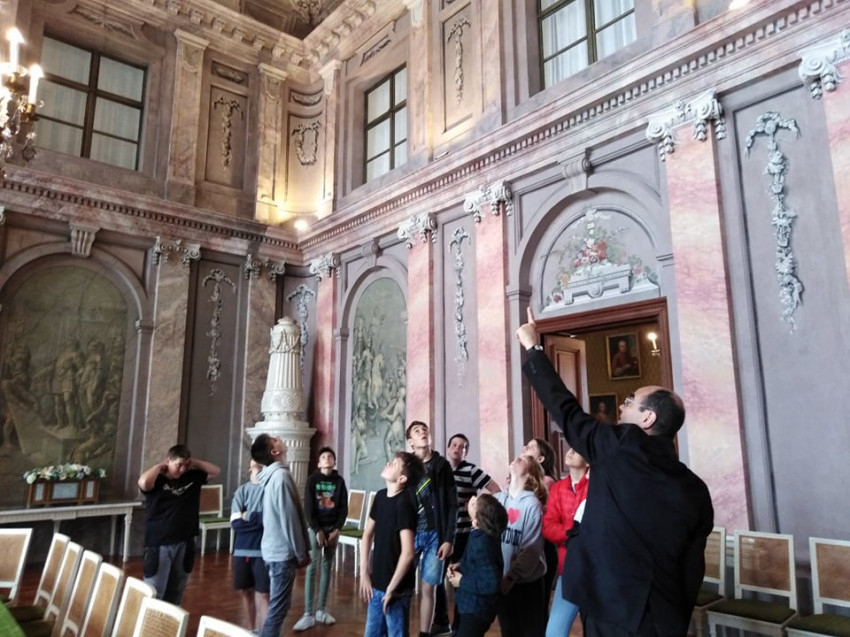 Miközben végigmentünk a kiállításon, püspök atya beszámolt nekünk a fontosabb képekről, személyekről, írásos emlékekről, emléktáblákról és egyéb különlegességekről. Végignéztünk sok gyönyörűen feldíszített termet. Nagyon izgalmasan adta elő azt, hogy miről mit kell tudni.