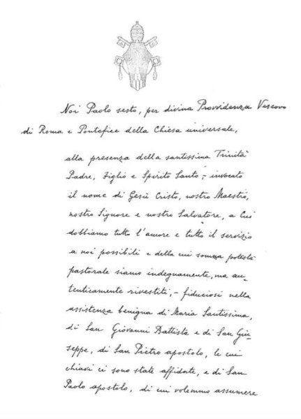 Mi, hatodik Pál, az isteni Gondviselésből Róma püspöke és az egyetemes Egyház pápája,