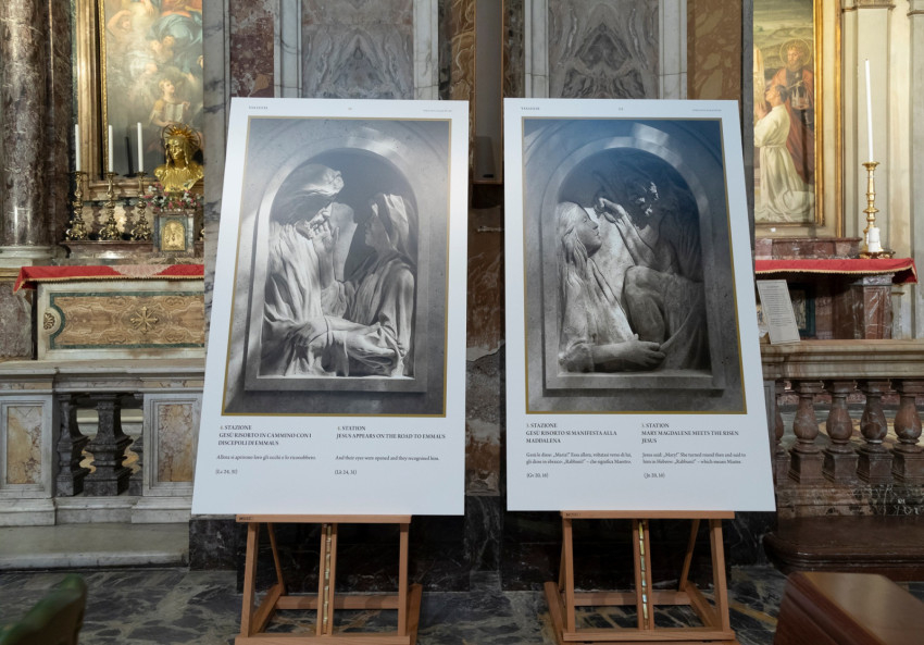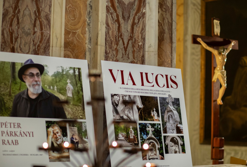 A Forum Romanumon álló Szent Franciska-bazilika főhajójában sorakoznak a művészi fotók. Tizennégy kőbe faragott stációt ábrázolnak, amelyeket a Kossuth-díjas Párkányi Raab Péter Péliföldszentkereszten, a fény útján, vagyis a szaléziak helyi rendházához vezető úton állított fel.