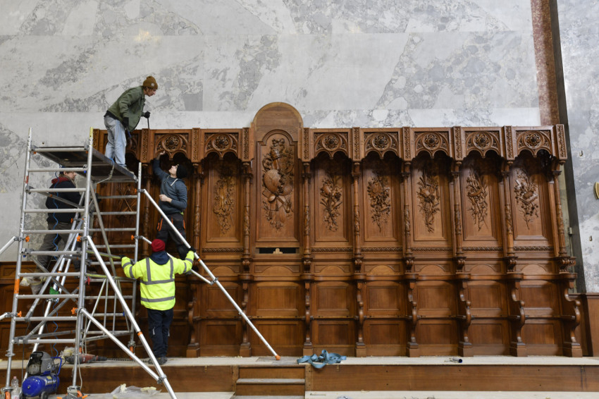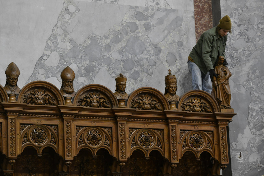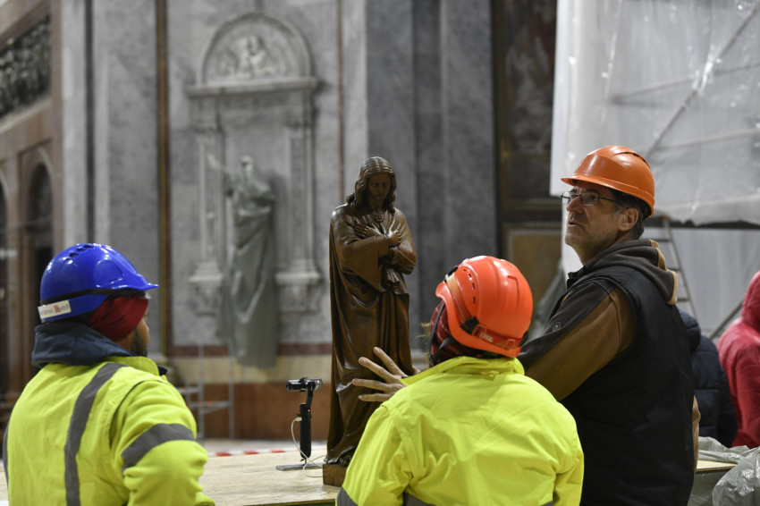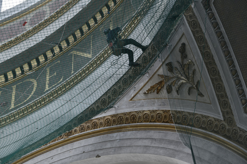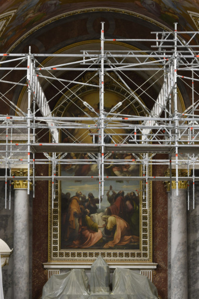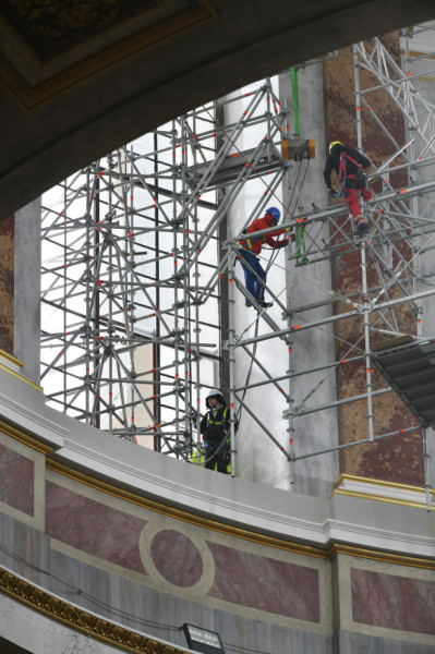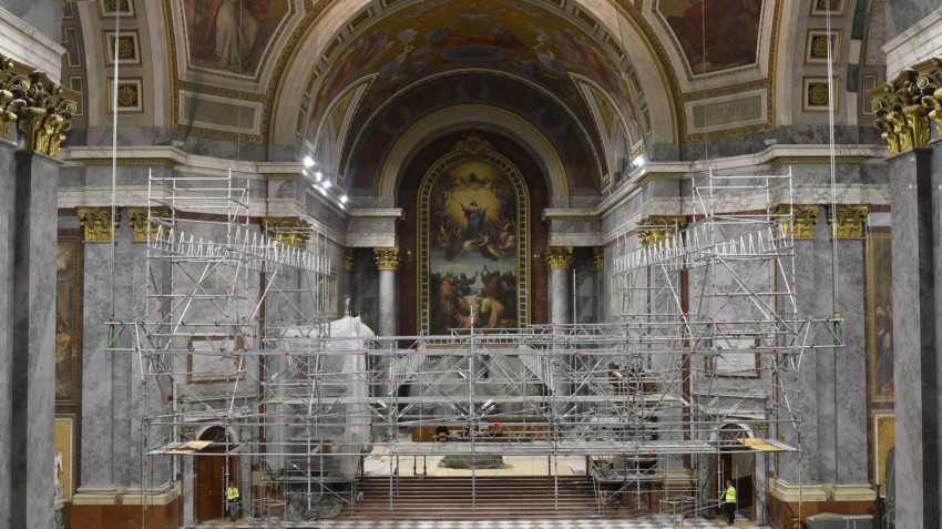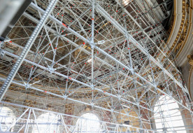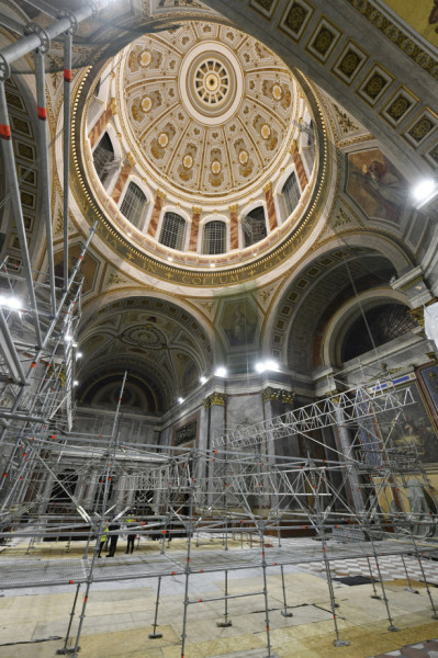A restaurátori munkák 2021 júniusában kezdődhettek meg,és a felújítás egy esztendeje alatt tucatnyiszor átépítették az állványrendszert, hogy minden felület sorra kerülhessen. A félgömb kupolabelsőből három hónap átszerelés után készítették elő a szerkezetet a következő feladatára.