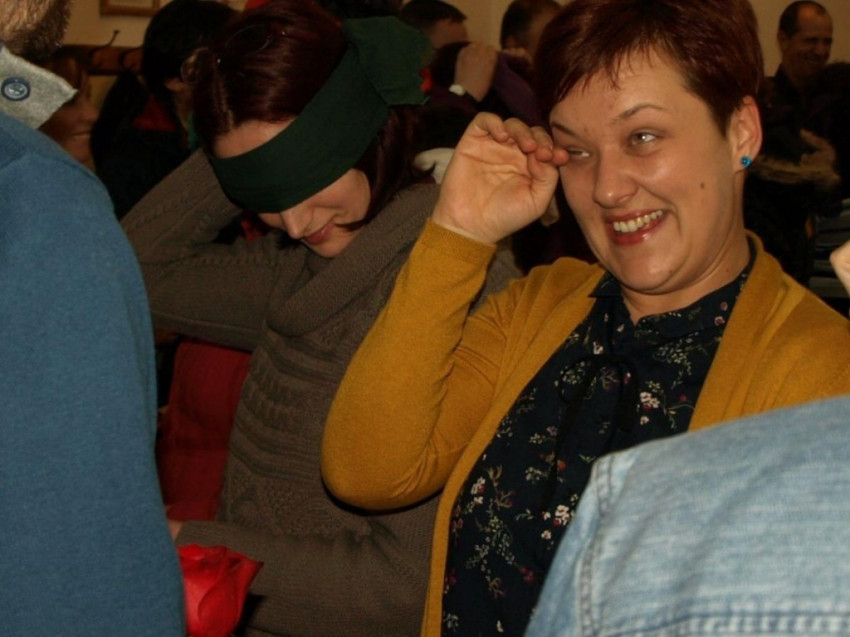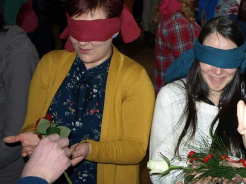 Ezt követően körjáték keretében bekötötték az édesanyák szemét, s amikor a kendő lekerült, minden hölgy előtt ott állt a férje, aki egy szál rózsával vallott szerelmet és mondott köszönetet élete párjának.