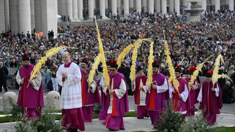 A datolyapálmákat a Neokatekumenális Út ajánlotta föl, melyeket a Pápai Liturgikus Szertartások Hivatala helyez el. A hagyományos „palmurelli” – vagyis pálmafonatok idén egy sanremói magánvállalkozás adományából díszítik a Szent Péter teret.