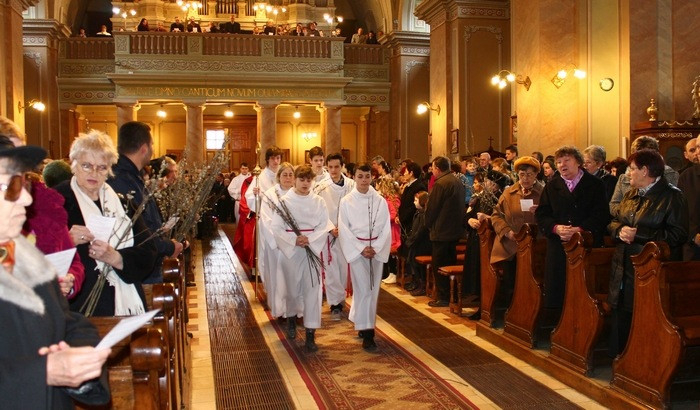 A virágvasárnapi szertartás a püspöki palota előtti barkaszenteléssel kezdődött, majd a székesegyházba történő ünnepélyes bevonulással folytatódott. Böcskei László megyéspüspök celebrálta az ünnepi szentmisét, amely megnyitja a nagyheti ünnepkört, ami egy hét múlva a keresztények legnagyobb ünnepével, húsvéttal fog beteljesedni.