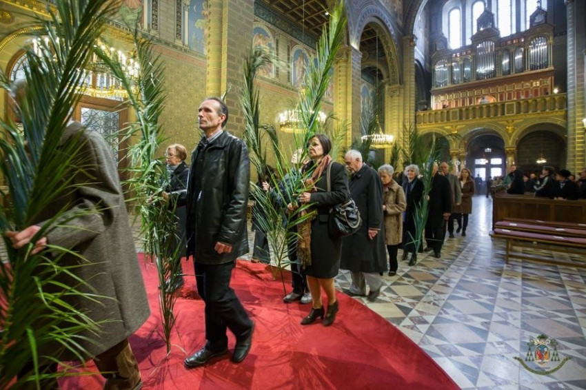 Amikor felidézzük az eseményeket, hiszünk abban, hogy az Isten Fia bennünket akar összegyűjteni maga köré. Most mi vagyunk az Ő népe, Jézus hozzánk akar szólni, hozzánk akar jönni. Csatlakoznunk kell Jézushoz. Virágvasárnap nem körmenetet tartunk, hanem a barkák megáldása után bevonulunk a templomba – ebben az évben az irgalmasság szentkapuján keresztül –, idézve Jézus bevonulását, és jelképezve a mi életünk bevonulását az Isten országába – hangsúlyozta Palánki Ferenc.