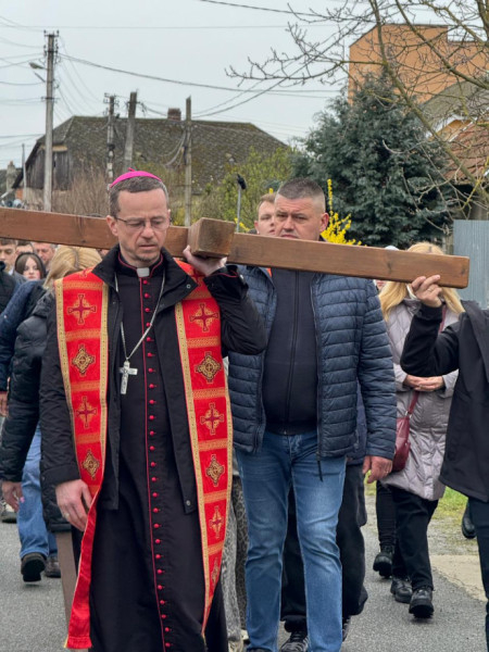 A plébános hangsúlyozta, hogy az idei keresztutat nemcsak a békéért ajánlják fel, hanem ellenségeik és a bűnösök megtéréséért is. Felidézve Jézus szavait – „Atyám, bocsáss meg nekik, mert nem tudják, mit cselekszenek!” – arra buzdította a jelenlévőket, imádkozzanak azért, hogy a bűnösök bűnbánatot tartsanak és megtérjenek.