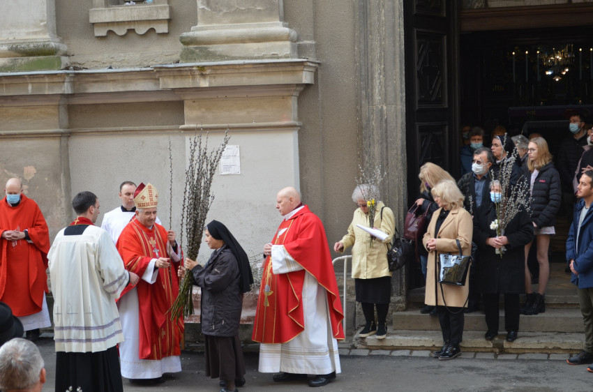 A szentmise elején a főpásztor megáldotta a barkaágakat, majd Jézus Jeruzsálembe való bevonulásának emlékére a kisszeminárium diákjai barkaágakat és ruhákat terítettek a földre, így vonulva be a székesegyházba, ahol a passió eléneklésével folytatódott a szertartás.