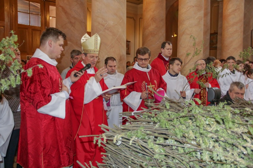 Nagyváradon a püspöki palota előtt barkaszenteléssel és a székesegyházba való bevonulással kezdődött a virágvasárnapi liturgia. A szentmisén a székesegyház Szent László kórusának előadásában hangzott el Urunk szenvedéstörténete, Kristófi János karnagy vezetésével.
