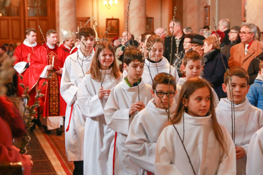 A nagyváradi püspöki palota kapuja előtt áldotta meg Böcskei László megyéspüspök a virágvasárnapi barkákat. Ezután Urunk, Jézus Jeruzsálembe való bevonulásáról, királyként való tiszteletéről megemlékezve a hívek a kezükben a megáldott barkákkal a székesegyházba vonultak, liturgikus énekek kíséretében.
