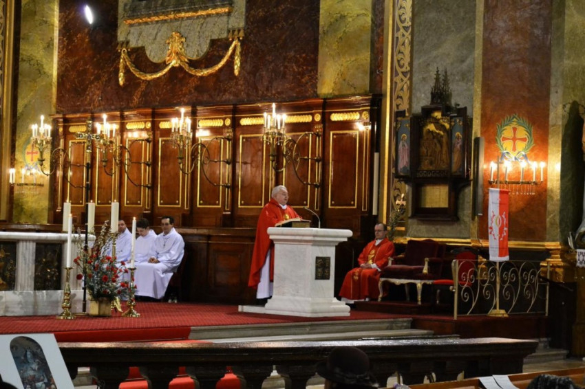 Onnan hangzott el az evangélium és onnan szólt a főpásztor a hívekhez: „Ezzel a szertartással lépünk be Urunk szenvedésének történetébe – ahogyan a bevezetőben megfogalmazza az Egyház, Krisztus misztériumába, szenvedésébe és feltámadásába. A húsvét ünnepe most kezdődik. Pár nap és belépünk a szent három napba: nagycsütörtök este, nagypéntek, nagyszombat, a vigília és utána húsvét vasárnap kicsúcsosodik a mi ünneplésünk.”