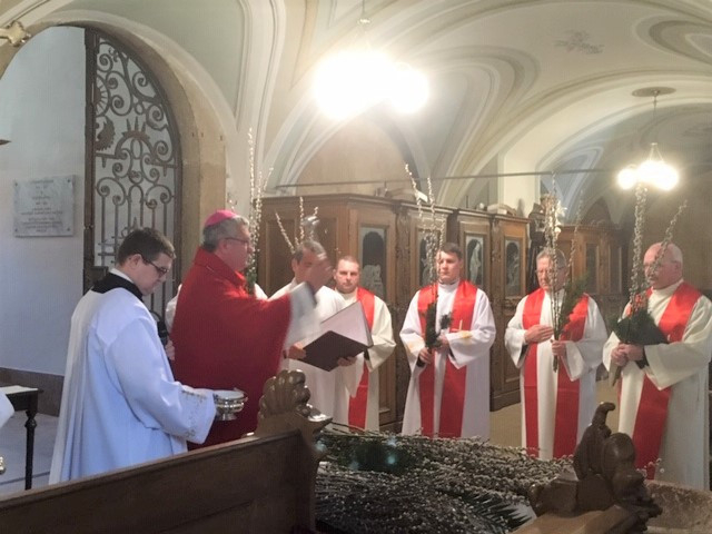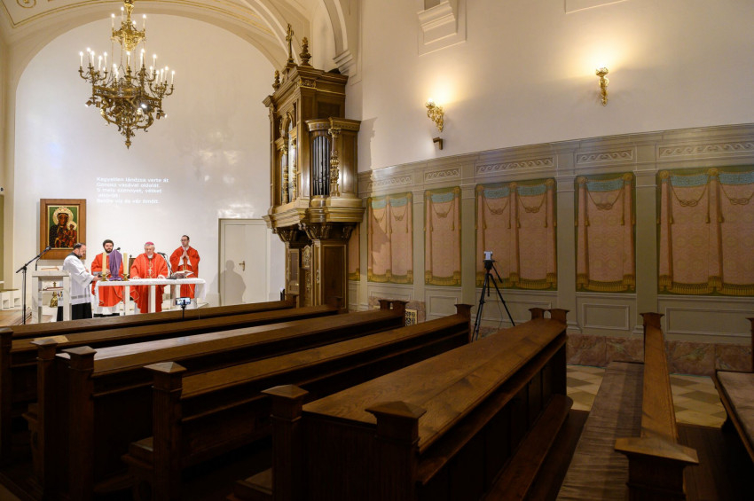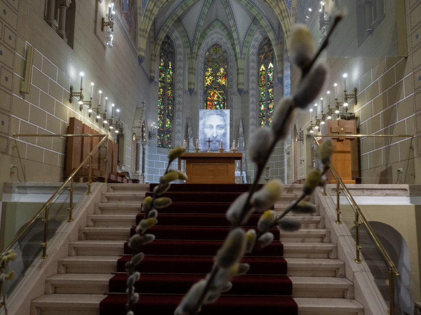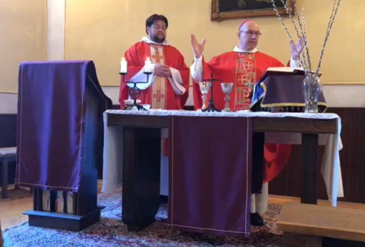 Marton Zsolt váci megyéspüspök Paszternák Tamás püspöki titkárral a váci püspöki palota kápolnájában mutatott be szentmisét virágvasárnap. A főpásztor az egyházmegye karitászcsoportjaiért ajánlotta fel a szentmisét, amelyek önkéntesei hősiesen helytállnak a járványveszély idején.