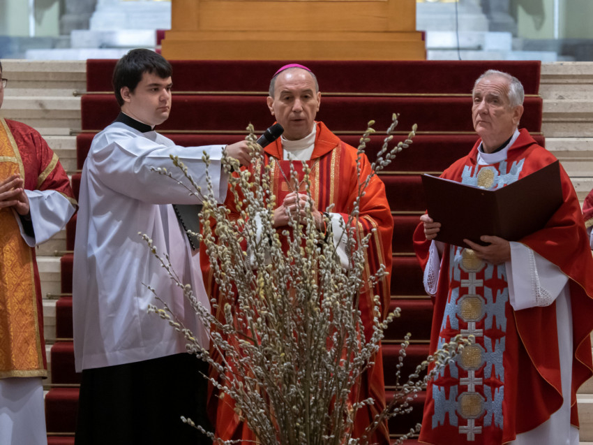 A szombathelyi székesegyházban Székely János megyéspüspök mutatott be szentmisét virágvasárnap.