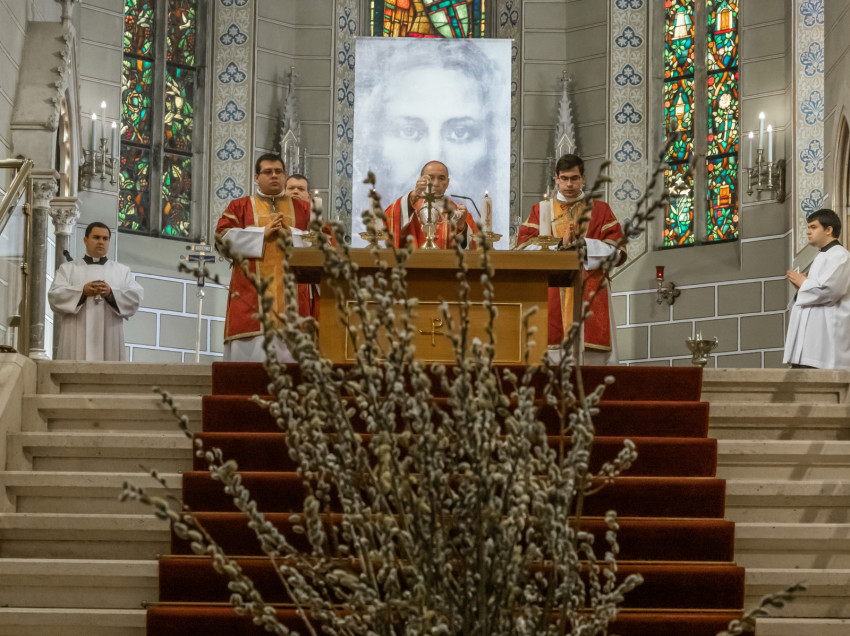 A budapesti Szent István-bazilika Szűz Mária-kápolnájában Snell György segédpüspök vezette a virágvasárnapi szertartást és szentmisét (Fotó: Erdős Dénes)