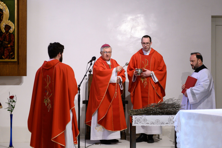 Varga László megyéspüspök a kaposvári püspökség kápolnájában mutatott be szentmisét virágvasárnap.