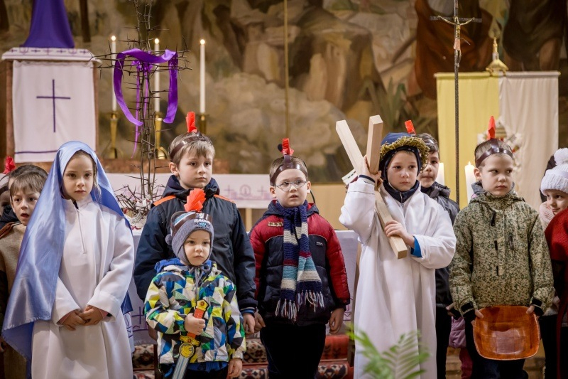 Az óvónők kérésére a szülők a családok életéről szóló elmélkedésekkel kísérték Krisztust a fájdalmak útján, mialatt a gyermekek Jézus szenvedéstörténetének szereplőit jelenítették meg szavak nélkül, pantomimszerűen.