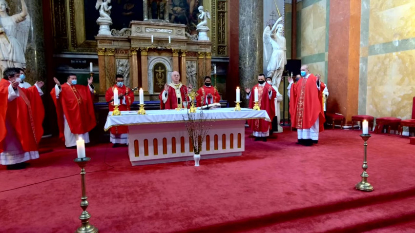 A virágvasárnapi szertartáson az Egri Érseki Papnevelő Intézet növendékei idézték fel Jézus kínszenvedését, Szent Márk evangélista szerint.