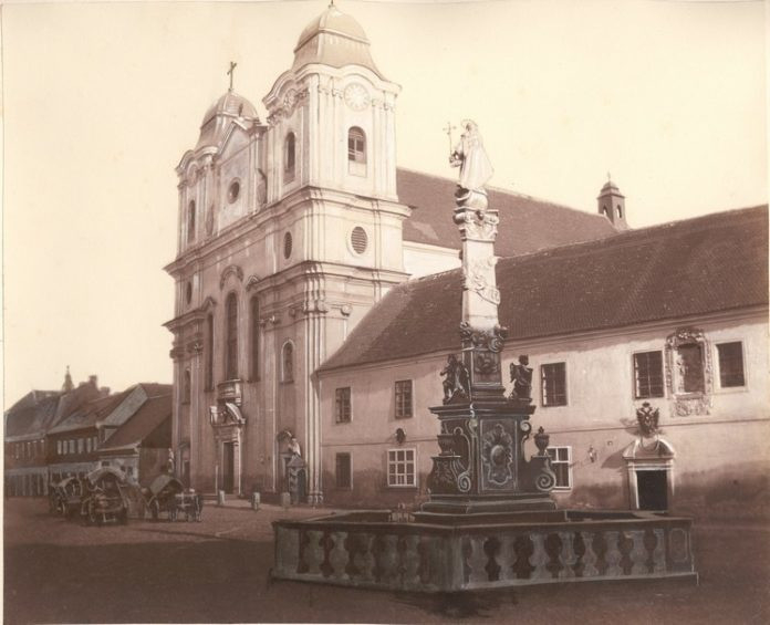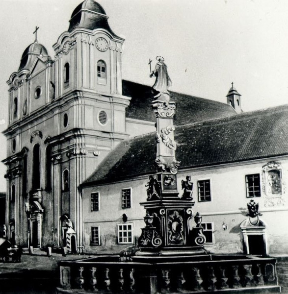 Annak lehetőségéről, hogy a szobor a piarista templom elé visszakerüljön, Veres Stelian plébániai kormányzótól hallottam először. Nem sokkal új feladatköre átvétele után mesélt mindarról, aminek terhe most az ő vállára került. A Szent Mihály-templom felújításának ténye már ismert volt, de a térrendezés és oszlopköltöztetés lehetőségéről először hallottam. Kérdésemre elmondta: amióta a piarista templomban misézik, elkezdett a templom története iránt komolyabban érdeklődni, tájékozódott a múltjáról. A fogadalmi Mária-oszlop különösen is tetszett neki, mivel az egykori városlakók hitét fejezi ki. Azóta is lelkes híve annak, hogy ez az Istenbe vetett bizalmat kifejező emlékmű újra az eredeti helyére kerülhessen.