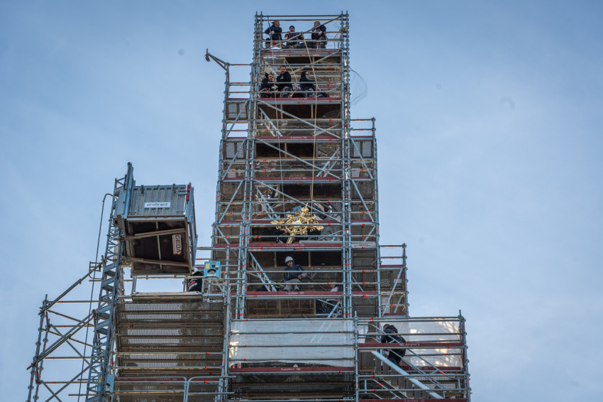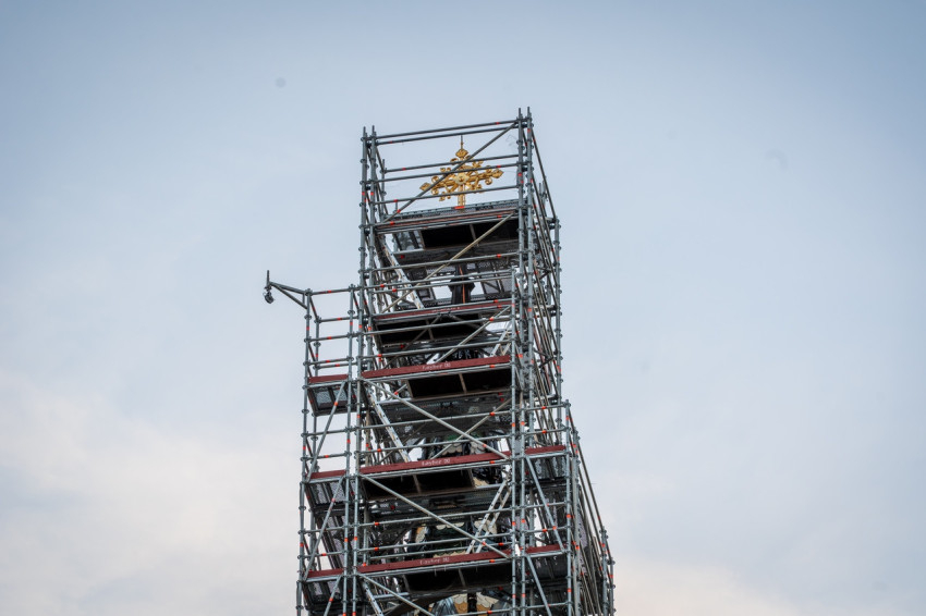 A felújítás projektvezetője, Sarkadi Márton elmondta: a tetőjavítási munkák a végéhez közelednek, és a homlokzatok munkálataival is előrehaladtak, a torony felújítása pedig teljesen elkészült. A lábazati munkálatokat és a szigetelést az állványzat elbontása után tudják elvégezni. A homlokzatok felújításával várhatóan tavasszal készülnek el, és ezt követően kezdődhetnek el a belső munkák.