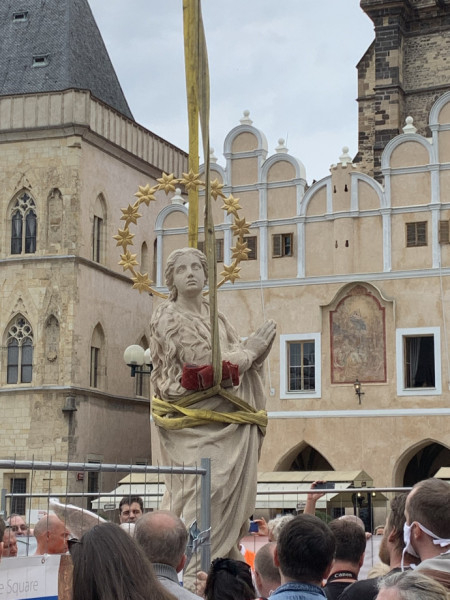 Eredetileg szeptemberre tervezték a szobor visszaállítását. Hogy miért és hogyan alakult úgy, hogy pont a magyar nemzeti összetartozás napján valósították mégis meg, ezt nem tudhatjuk. Nekünk, katolikus magyaroknak azonban ez szép és mélyebb jelentőséget hordozó gesztus, mint csupán egy lerombolt szobor visszaállítása. Példa a múlttal való megbékélésre, a vallási és nemzeti párbeszédre, az előremutató jövőképre. Ahogy Husz János és Szűz Mária újra együtt állnak Prága leghíresebb terén, békét és egyetértést szimbolizálva az igazán fontos kérdésekben, úgy nekünk is meg kell békülnünk a múltunkkal, hogy szép legyen a jelenünk és a jövőnk.