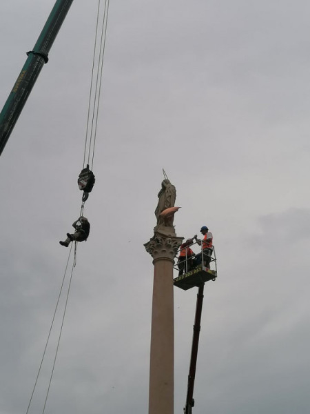 Még egy évvel korábban, 2019. június 23-án is arról olvashattunk a Magyar Kurír hasábjain, hogy a prágai önkormányzat ellenzi a Mária-szobor visszaállítását, holott ez eredetileg már a lerombolás 100. évfordulójára tervbe volt véve. Tavaly nyáron Petr Vána szobrászművész területfoglalási engedély nélkül felszedte a kövezetet az eredeti oszlop helyén, és jelképesen nekifogott a szobor felállításának. A hatóságok azonnal leállíttatták a munkálatokat, noha a szobrász korábban engedélyt kapott az építésügyi hivataltól a szobor elhelyezésére.