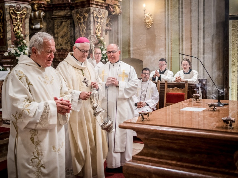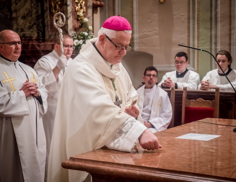 Spányi Antal püspök buzdító szavai után az oltár konszekrálásának szertartása következett.