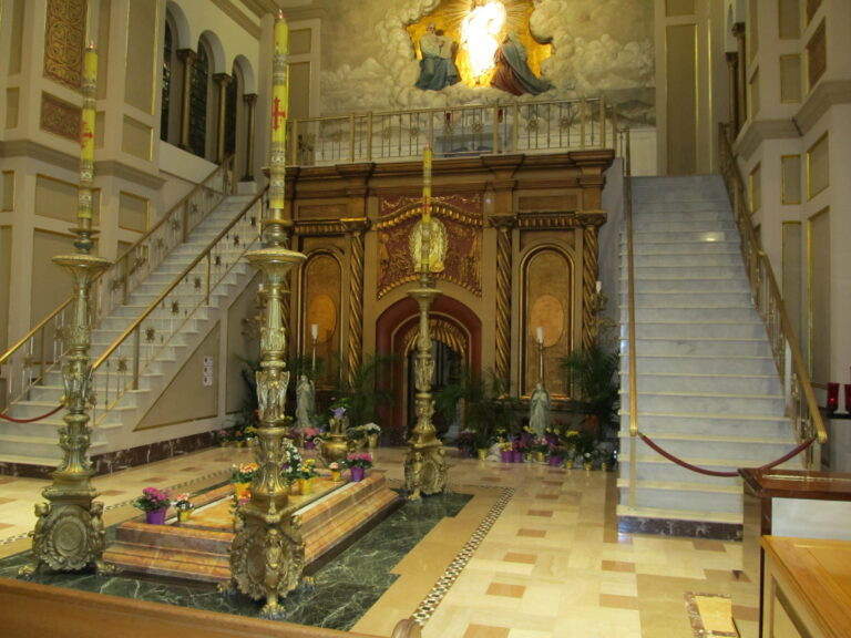 A washingtoni templom egyenlő szárú kereszt alaprajzú. A szent helyek másolatai a templomon kívül megtalálhatók még egy altemplomi részben (egy római katakombával színesítve a sort) és a nagy parkban is. A park olyan hatalmas, hogy helyet kap benne még egy kertészet és egy kiserdő is, közepén egy modern remetelakkal. A lelkipásztori szolgálat fontos része a gyóntatás, mindig talál gyóntatót, aki itt kopogtat.