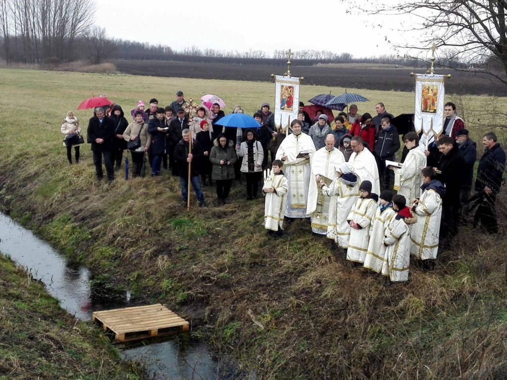 A január 5-i Szent Liturgiát követően természetes vízfolyásnál tartották a vízszentelés szertartását.
