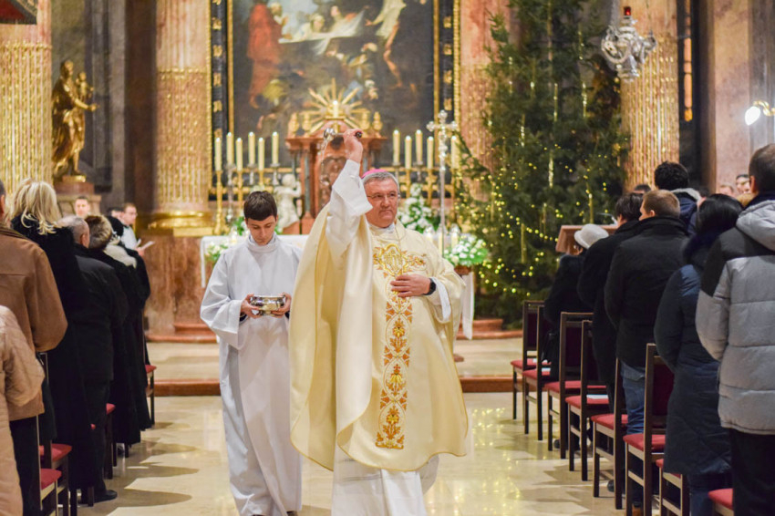 Az ünnep arra hív bennünket, hogy akarjuk megszentelni mindennapi életünket, mert Krisztus emberré lett, kinyilvánította magát, az Atya jóságát, az ember méltóságát és a mindennapi élet szentségét – erről is beszélt a főpásztor, hozzátéve: Mindennapi cselekedeteink megszentelésére az Egyháztól rendelt eszköz a szenteltvíz, ami keresztségünkre, istengyermeki méltóságunkra figyelmeztet bennünket.
