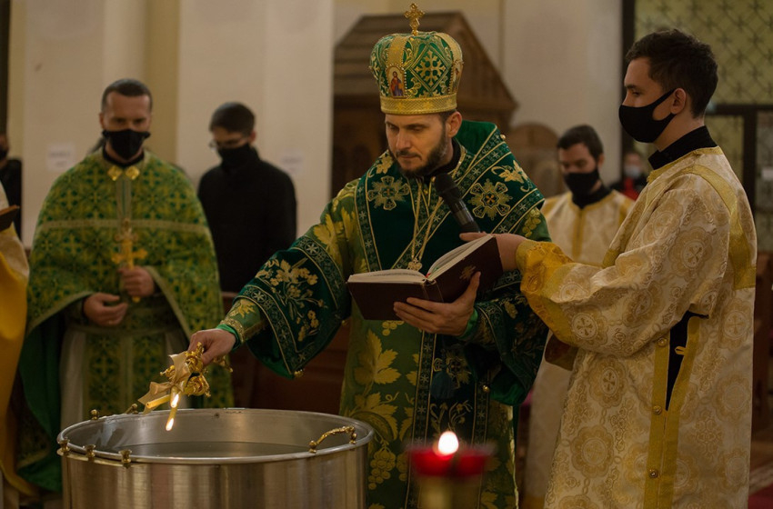 Vízkereszt ünnepének vigíliáján a görögkatolikus szertartásrend a nagyvecsernye szertartását írja elő Nagy Szent Bazil liturgiájával, melyet az egyházmegye székesegyházában Orosz Atanáz püspök vezetett.
