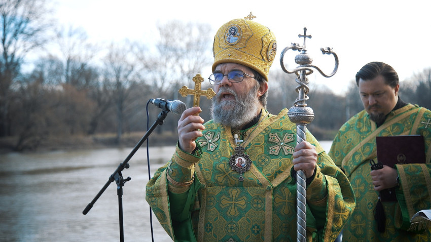 A liturgia után Orosz Atanáz püspök megszentelte a Tisza vizét Tokajban, a Széchenyi sétányon.