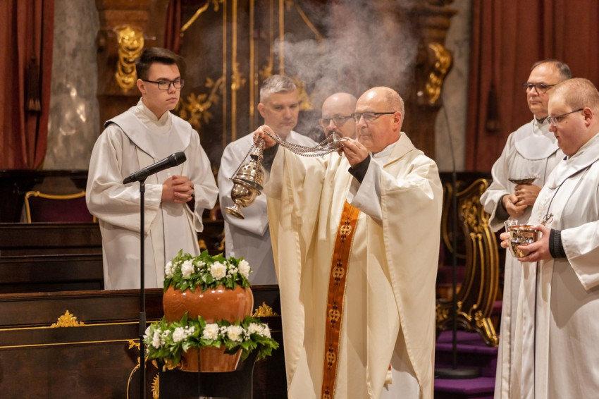 A bűnbánati liturgia részeként a megyéspüspök elvégezte a vízszentelés szertartását, és megáldotta azokat a matricákat, amelyeket a hívek házaik, lakásaik ajtajának szemöldökfájára helyezhetnek el.