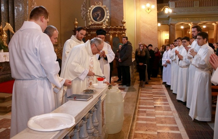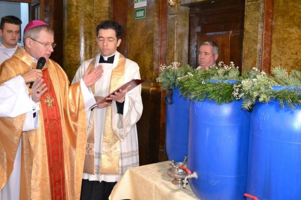 Vízkeresztkor szentelik meg a templomokban a vizet, amiből a hívek is vihetnek magukkal és szentelményként használhatják azt. Az általános helynök a bevonulást követően a jobb mellékoltárhoz vonult. Ott áldotta meg előbb a sót, majd vele az edényekben levő vizet. Közben így imádkozott: „Add, hogy ez a víz, mennyei ajándékaid szolgálatában űzze el a gonosz lelket, tartsa távol a betegségeket és hordozza magában az isteni kegyelem hatékony erejét. A hívek házában vagy bármely helyen, akármit is érint vagy meghint ennek a víznek cseppje, az legyen egészen tisztává. Ne üthessen tanyát ott a gonosz lélek, ne verjen gyökeret a rontás szelleme, szűnjék meg a sátán minden cselvetése. Ennek a víznek hintése és szent neved segítségül hívása által Urunk, te őrizd meg a ház lakóinak épségét és nyugalmát.”