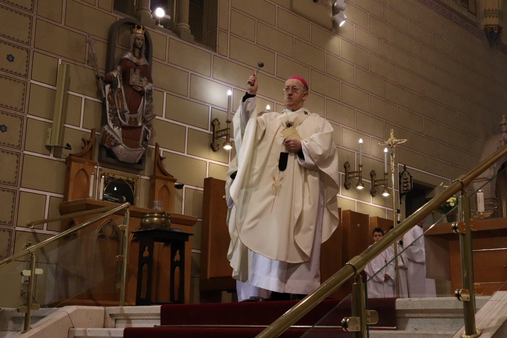 A szentmise kezdetén került sor a vízszentelés szertartására, mely során a főpásztor megáldotta a sót és a vizet, elegyítette őket, majd a szenteltvízzel meghintette a híveket is.