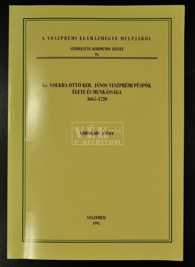 A Körmendy József Gr. Volkra Ottó Ker. János veszprémi püspök élete és munkássága (1665–1720) címet viselő monográfia a Veszprémi egyházmegye múltjából című sorozat 16. kötetként jelent meg 1996-ban. Szerzője – a nagy múltú könyvsorozat újraindítója – Körmendy József (1911–2005) katolikus pap, felsőörsi prépost-plébános, levéltárigazgató. A bőségesen lábjegyzetelt, jól tagolt, nagy gondossággal elkészített munka a 18. század első évtizedeinek egyházmegyére vonatkozó történetét tárja fel közérthető formában a főpásztor életrajzának ismertetésén keresztül.