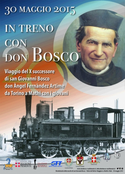 A Torino–Lanzo vasútvonal 1876-ban, még Don Bosco életében épült. Felidézve a sok utazást, amit Don Bosco ezen a vasútvonalon tett meg, a rendfőnök is vonattal érkezett a piemonti Mathi és Nole városokba.