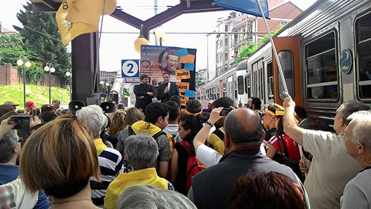 A vasúti zarándoklat kora délután kezdődött a torinói Dora vasútállomáson, ahonnan a rendfőnök titkára, Horacio López kíséretében indult útnak.